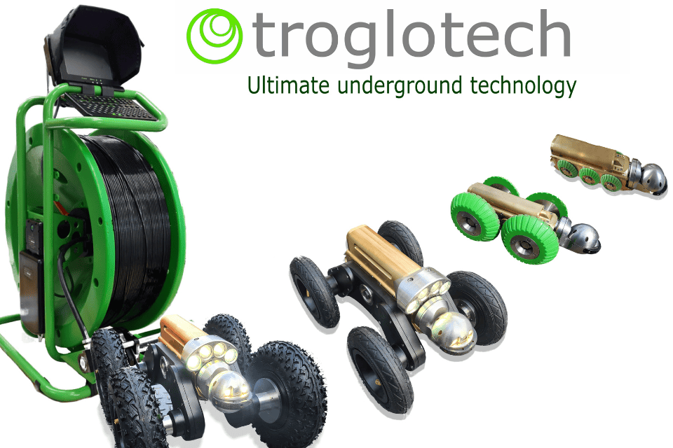Troglotech’s systems are all battery operated so there are no dangerous voltages or generators required. The latest battery technology is used which provides a full days work from two crawler batteries and a single charge of the control unit battery.