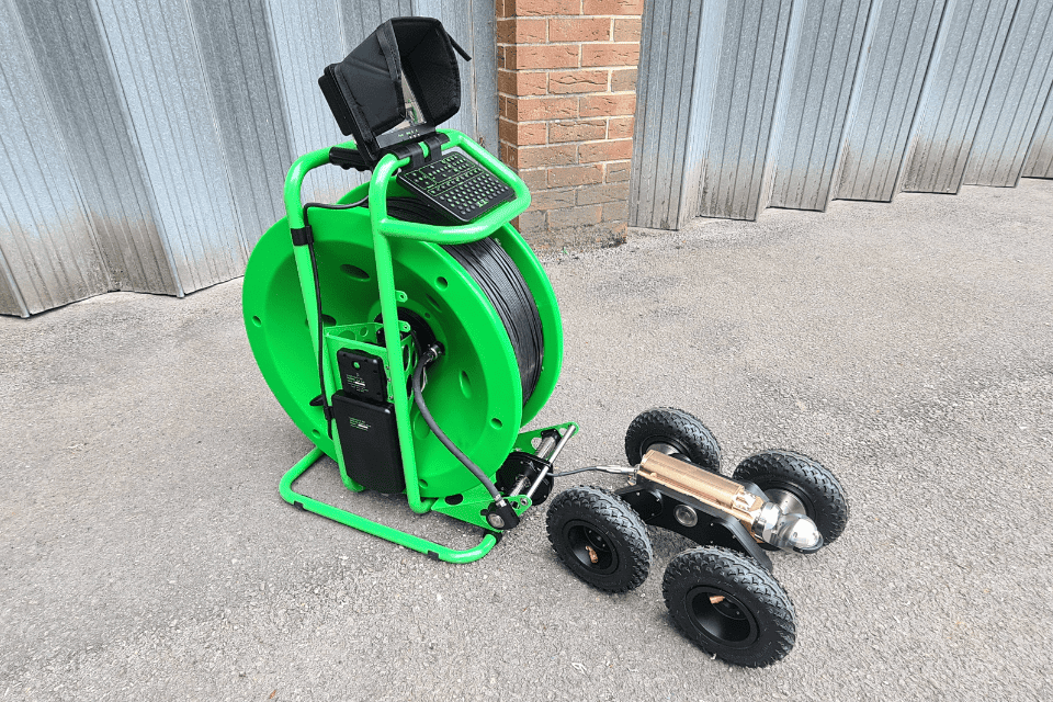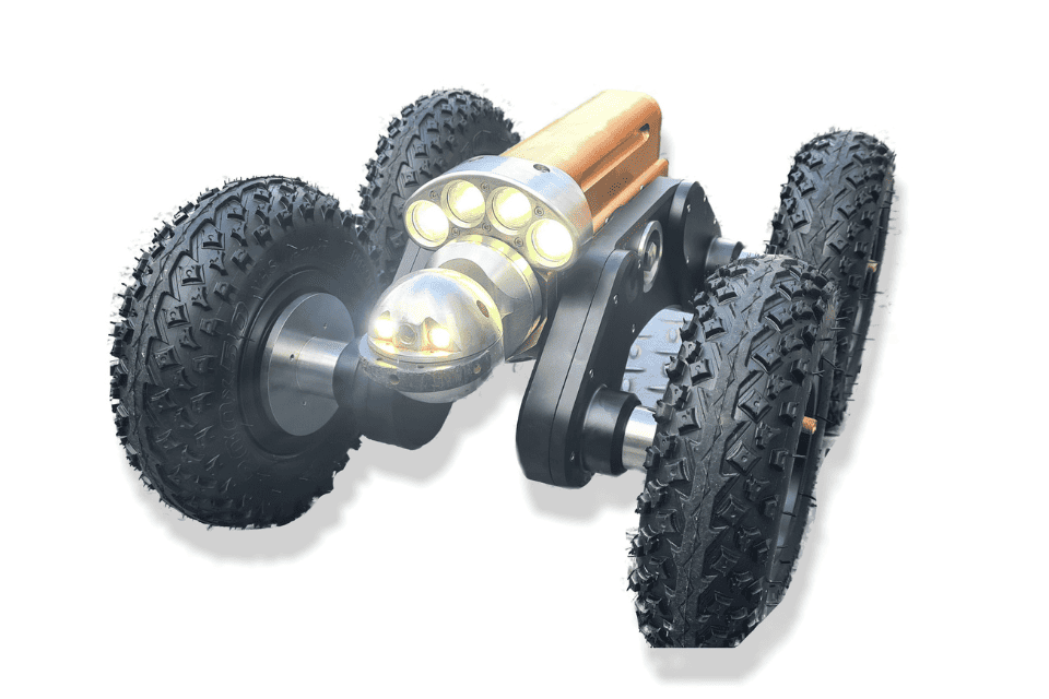 Troglotech’s Crawler System is Lithium-Ion battery-operated and uses the latest technology for long mission times. The system is lightweight and highly portable which makes it very effective to use for both commercial and residential applications. As usual with Troglotech products, the system is highly robust with the crawler being machined from solid brass and stainless steel. With a range of quick-release wheel sets (the wheel bolts are locked into position for security) you can survey the full range of pipe sizes starting from 4” (100mm). The crawler is steerable and has a reversing camera and lights so that a survey can be performed in either direction. The batteries on the crawler have a long mission time (up to a full days inspection work) are quick-release and can be charged on-site or via a mains supply