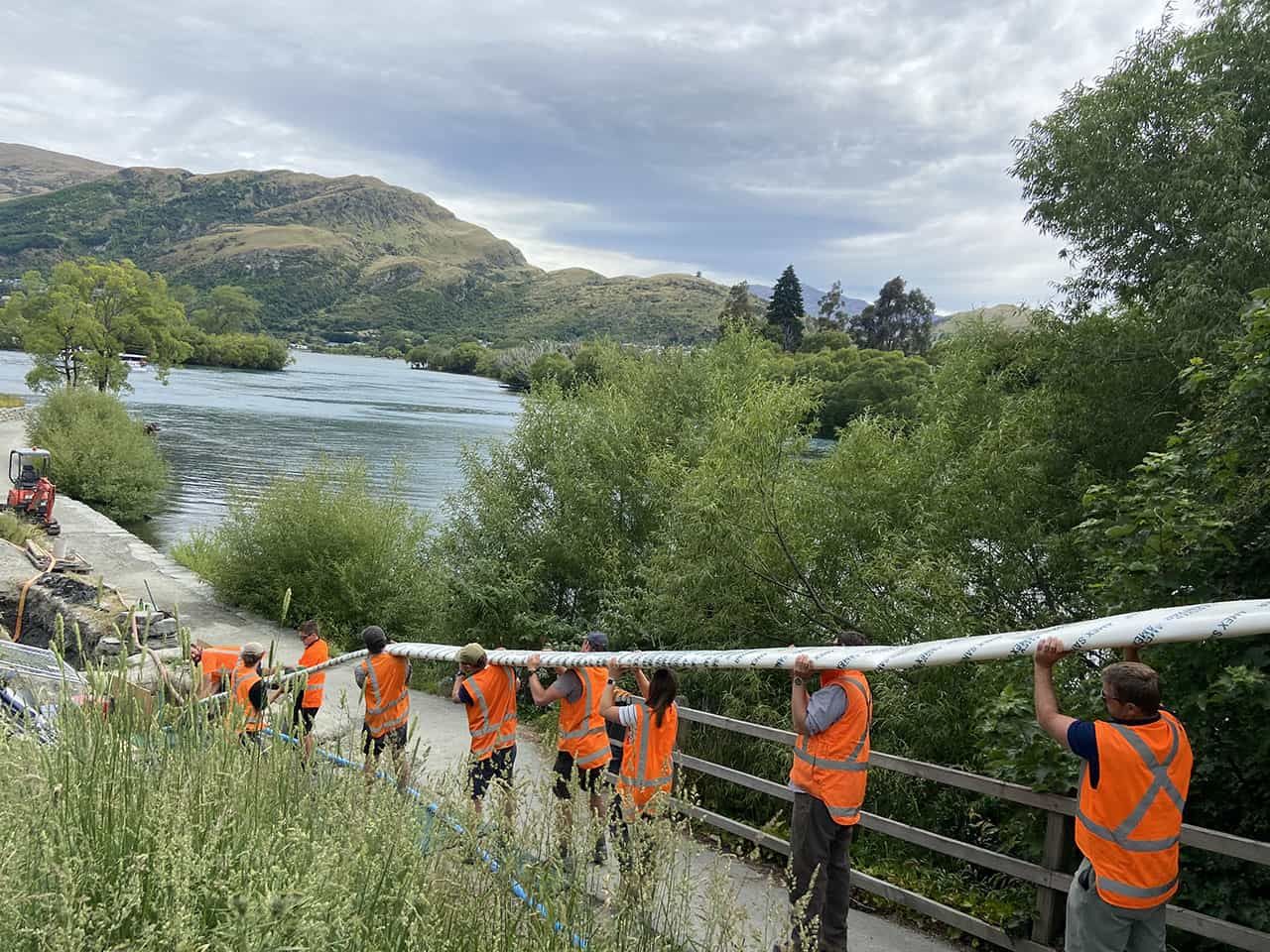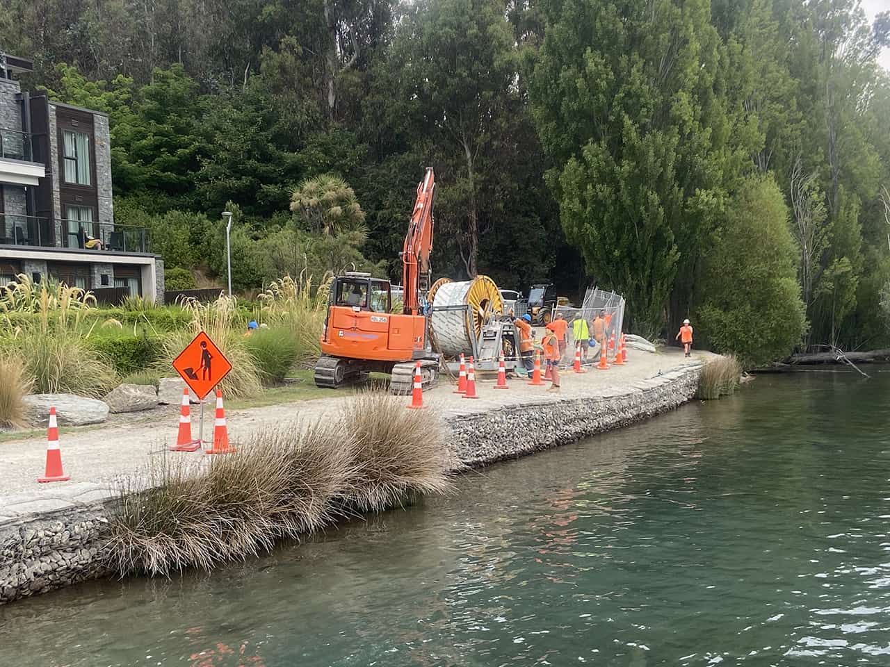 Queenstown Lakes District Council (QLDC) needed to upsize the pumping station which serviced Kelvin Heights. Unfortunately, the existing 400mm PN6 & PN8 PE pipework could not handle the increased pump pressure so needed to be upgraded. The 700m pipeline ran in a small corridor approx. 5m off the shore line of Lake Wakatipu and along the frontage of the Hilton Hotel. The retaining wall holding up the walk way on the lake edge was also collapsing which meant heavy vehicles and plant could not access the pipeline. H&B’s solution was to line the existing PE pipeline with Amex pressure liner to increase the rating to PN16.